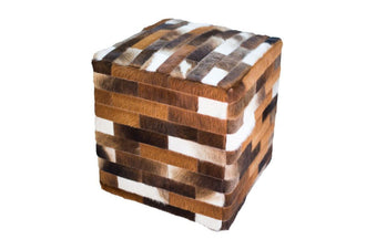 cowhide cube patchwork ottoman - dark brown